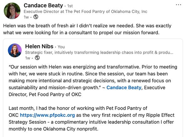 Each month, I donate a high-impact workshop, team training, or strategic consult to a local 501(c) nonprofit making real change. Testimonials below.